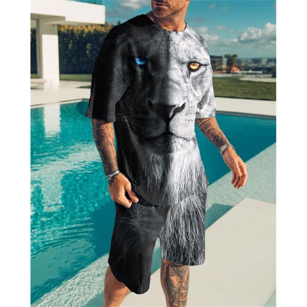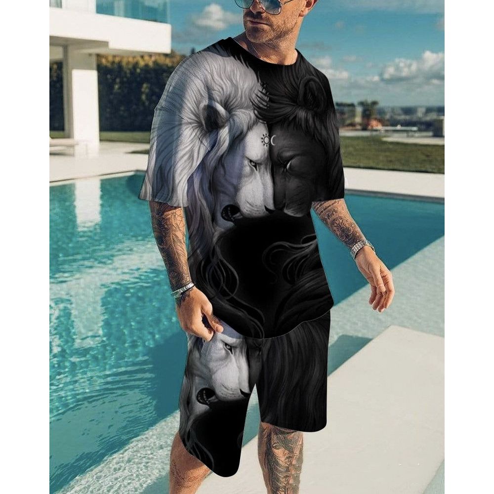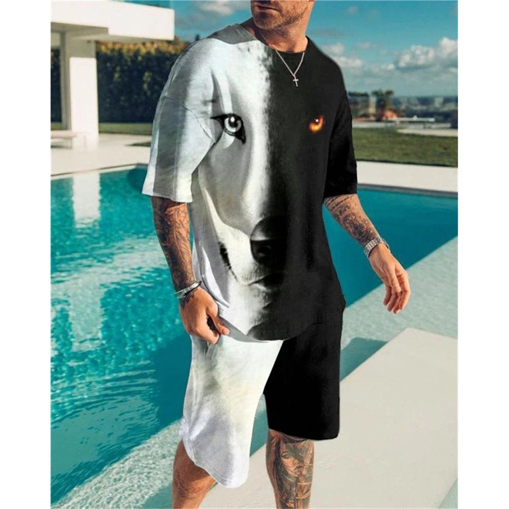 Upgrade your everyday wardrobe with this stylish Fashion Men's Casual Printed Two-Piece Sports Set. Designed for modern men who love bold fashion, this outfit features a unique half-black, half-white face graphic that delivers a confident streetwear look.